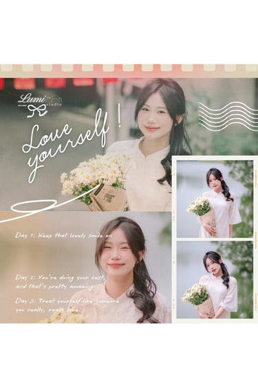 Các bạn trong studio support nhiệt tình lắm ạ, chụp ngoài trời mình được chị makeup dặm lại mấy lần luôn!